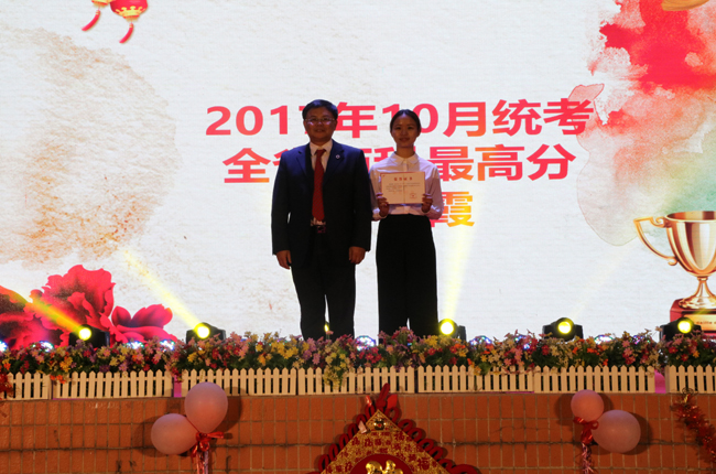 随后胡海娟和曾健文分别宣读了《关于表彰2017年10月自学考试“统考高分奖”的决定》和《关于表彰2017学年度“学风示范班”和“学院学习之星”的决定》。院领导为自考高分奖学生和优秀学风班级及各项比赛获奖选手颁奖。