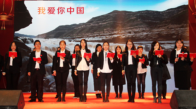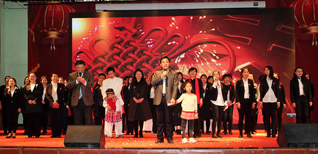 本次联欢会以工会小组为单位,文艺节目均为学院老师自编自导自演,形式多样,内容丰富。联欢会由第五工会小组(学工办、教学管理办公室)带来的歌舞《少年强,青年强,中国强》开场,四位小朋友通过深情的朗诵表达着青少年对祖国的热爱,然后各位老师身穿各朝代、各民族礼服走秀,展现出坚定执着的姿态和良好的精神风貌;接着是第四工会小组(继续教育中心)的多国语言诗朗诵《面朝大海,春暖花开》,各位老师分别用中文、英语、日语、韩语、西班牙语表达了对美好生活的向往和祝福;第二工会(研究与发展中心、国际商务系)的联唱《时代序曲》,用歌声带领大家回顾了新中国在一代代伟人的领导下,奔走在社会主义道路上,幸福的中国人对实现民族复兴中国梦的憧憬;第三工会小组(外语系)的《我的祖国》用诗歌和合唱传达着对祖国山河、悠久历史的热爱与赞美;大学城分部的合唱《绒花》,年轻老师们,自喻烛光与鲜花,他们用青春和芳华引领照亮学生进步的方向,其间穿插着师生、朋友之间相逢之喜、相惜之爱;第一工会(党政办)的《健康中国赢未来》用跑步、打羽毛球、踢毽球、跳绳等运动告诉大家健康的重要性,体育强,才能中国强。临近尾声,进入了联欢会的抽奖环节,随着48位幸运奖券的抽取和公布,不断掀起晚会的高潮。联欢会最后在学院领导和老师们的大合唱《大中国》中圆满结束。