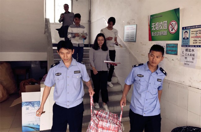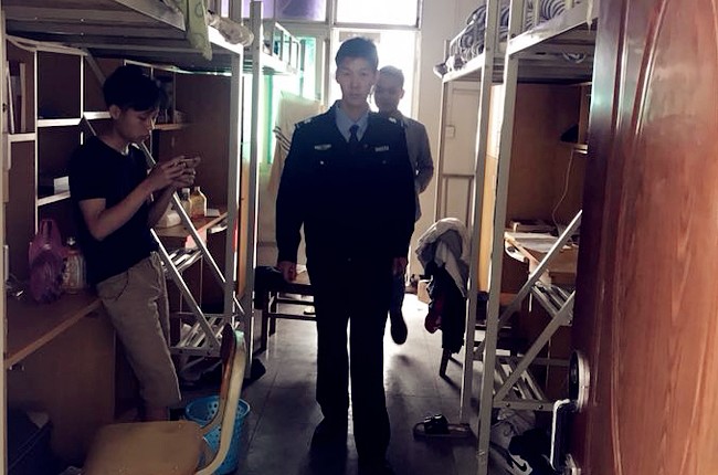 工作人员进行宿舍安全检查