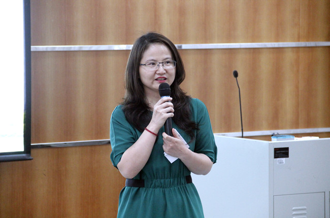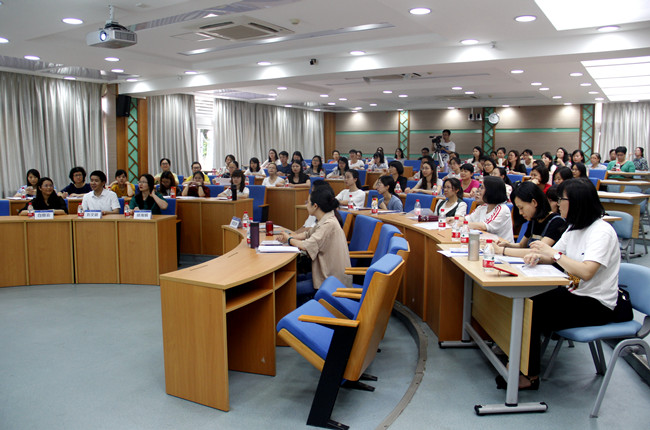 胡海娟在开班仪式上用中英双语致辞。她首先对参加本次培训的禅城区英语学科带头老师们的到来表示欢迎,并感谢佛山市禅城教育发展中心对广外的信任。她向学员们介绍了广外及学院的情况——广外是一所国际化特色鲜明的大学,学院已为100多家单位提供专业培训拓展,与南航、中海油、广汽丰田和地税系统等企事业单位长期合作,学院专业的师资、严格的管理和优质的服务得到培训单位一致好评。之前和禅城教育发展中心的合作,学院积累了宝贵的经验,相信通过专业的团队服务,本次培训必会取得圆满成功。