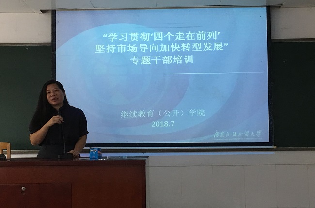本网讯 按照学院本学期干部培训工作安排,学院于7月12日上午在校本部第三教学楼220课室举行了“学习贯彻‘四个走在前列’坚持市场导向加快转型发展”专题干部培训会,学院部分领导和全体部长/教研室主任以上干部参加了培训会,会议由学院党委书记苏冬燕主持。