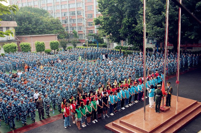 伴随着庄严的国歌声,五星红旗冉冉升起,翻开了新生在大学生活中崭新的一页。
