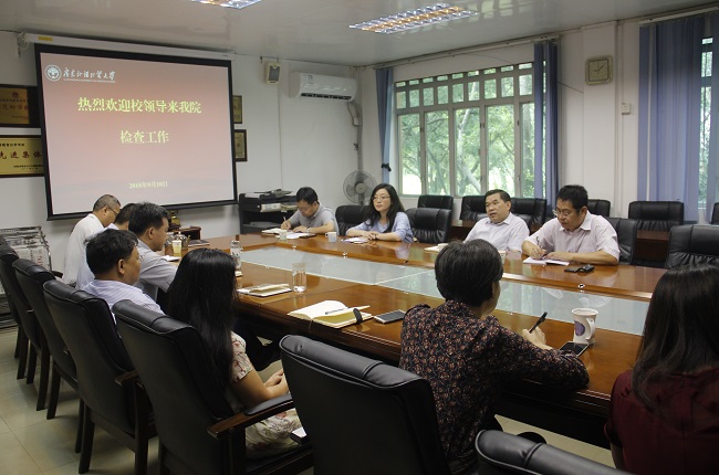 本网讯 秋意渐起,天高气爽,暑假转瞬即逝,学院又迎来了繁忙的新学期。按照大学的统一安排,副校长焦方太率领校党委组织部部长方迎生、国际合作与交流处处长蔡红、人事处教师发展中心主任孙远雷于9月10日上午来我院检查开学工作,学院全体领导在校本部三教207会议室向焦方太一行作了汇报。