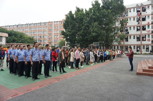 本网讯 2018年11月21日,广东外语外贸大学继续教育学院、公开学院消防月活动——消防演练在夏茅校区举行。大学保卫处副处长钟雄波、我院党委副书记曾健文、公开学院各系部、各行政部门、广州慧友投资有限公司的代表以及学生代表出席了本次活动,活动由学生管理办公室主任陈秋林主持。