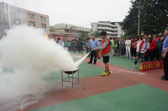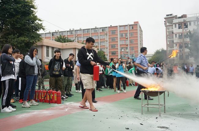 参加本次消防演练的教职员工、学生代表共有200多人,钟雄波在消防演练之前阐明了本次活动的目的和意义,希望大家通过这次实操演练,学会火灾报警,学会使用灭火器扑灭小火,学会火灾自护自救。曾健文也在消防演练之前指出,本次活动的主题是全民参与,防止火灾,要求大家切实落实消防安全措施,消除消防安全隐患,杜绝火灾发生,确保师生安全,确保学院稳定。