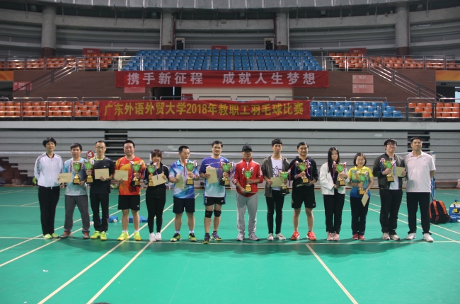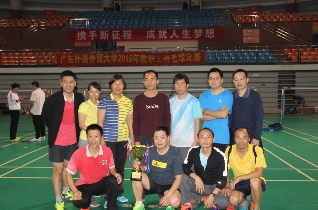 本网讯 12月1日,2018年广东外语外贸大学教职工羽毛球赛在南校区羽毛球馆圆满落幕。本次比赛共有20个工会代表队报名,参赛运动员有131名。我院选派了12名教工组队代表学院参加比赛,喜获得了团体总分冠军。