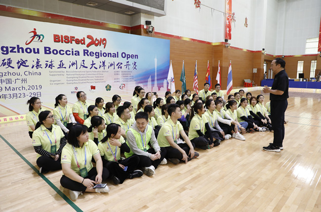 本网讯 由广州市残疾人联合会承办的BISFed 2019广州硬地滚球亚洲及大洋洲公开赛于3月23日-29日在广州市残疾人体育运动中心举行。本次公开赛属于洲际公开赛,是2020年残奥会硬地滚球项目的积分赛,也是国际硬地滚球协会批准的2019年系列赛事中的首场比赛。为做好BISFed 2019广州硬地滚球亚洲及大洋洲公开赛的各项工作,受市团委和校团委委托,学院党委同意。我院共选派团委书记赵正苗和50名赛会志愿者参加此项活功。志愿者主要在比赛场馆进行志愿服务,主要包括竞赛裁判工作、代表团随队翻译、后勤工作、礼仪工作以及其他工作。