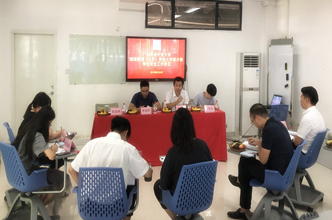 本网讯 为了做好新学期学生返校报到及新生来校就读迎接工作,8月30日下午,大学城分部在学生服务大厅召开学生安全工作会议暨迎新工作布置会,学院党委副书记曾健文、学生工作办公室副主任李清伟及辅导员出席参加本次会议,会议由大学城分部主任王莉莎主持。