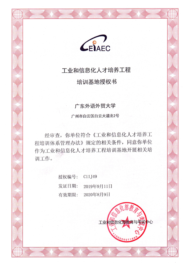 本网讯 2019年9月11日,经国家工信部教育与考试中心严格审核正式批准,我校成为“工业和信息化人才培养工程”培训基地,致力于培养当前急需的高端技能人才。