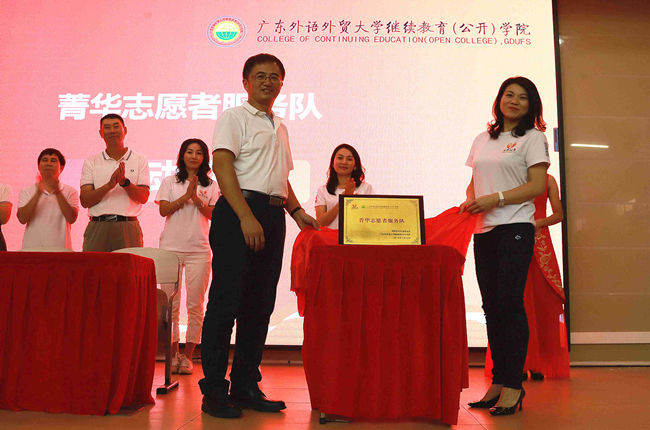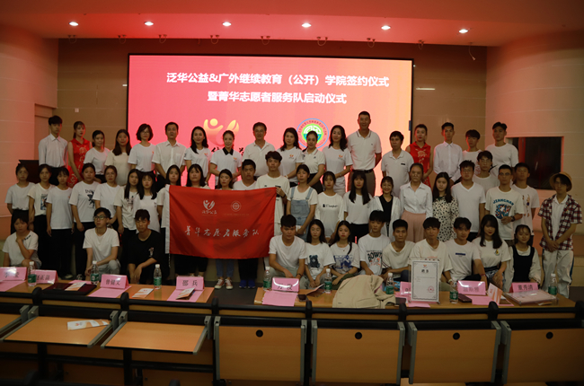 签约仪式后,邵兵和万俊共同为菁华志愿者服务队揭牌,邵兵现场宣布菁华志愿者服务队招募即日起正式启动。从此,我院学子将和泛华公益一起,让公益足迹遍布各地,把爱心撒播在弱势群体的生活里,把行善的理念深深植入自己的心里。
