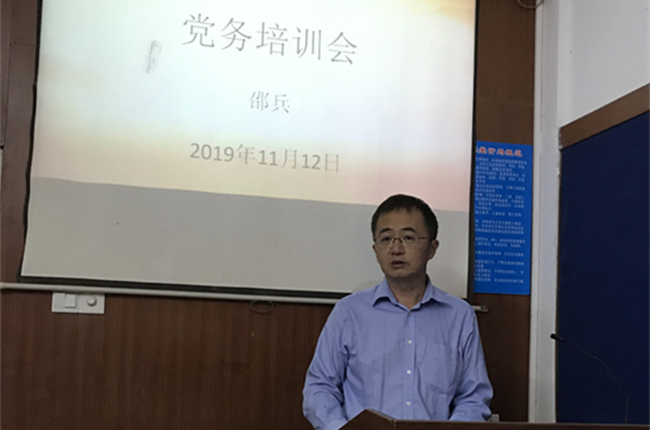 本网讯 11月13日下午,学院党委在校北校区三教222教室举行了新一届支部书记培训会。学院党委书记邵兵、各党支部书记、学生重点发展对象出席会议,会议由组织员陈秋林主持。