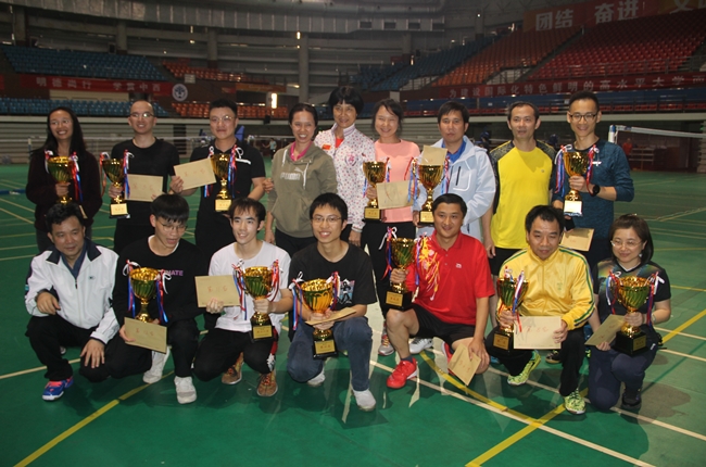 本网讯 12月1日,2019年广东外语外贸大学教职工羽毛球赛在南校区羽毛球馆圆满落幕。本次比赛共有21个工会报名参赛,共有一百多名运动员参加。我院共选派11名教工代表参加比赛,并获得了团体总分第二名。