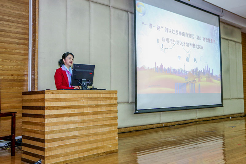 李渝凤在题为“‘一带一路’以及海南自贸区(港)建设背景下应用型外语人才培养模式探索”的演讲中,从海南省在国家“一带一路”倡议中的重要地位出发,详细阐述了海南外国语学院职业学院借助国家策略,从办学理念、办学模式和办学特色多方面,致力于国际化人才培养。目前海外院已开设20个小语种专业,与东盟国家建立友好合作关系,