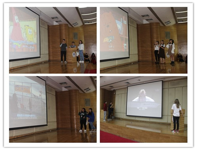 比赛一开始,首先由主持人简单介绍配音的电影背景,然后播放一段电影原声片段,之后再由选手们给每一片段的配音演绎。整场比赛高潮迭起,精彩纷呈。第四组来自C03的周美、敖慧婷出色演绎了《公主日记》中女主角、女配角火药味十足的争吵戏,其中两位主角片中长达几十字的独白难度非常之大。观众和评委们被两位位选手活泼动人、全神贯注的表演渲染了,随着她们或争吵、或释怀或温情,起起伏伏,不能自拔。来自A0301班的邓古金、张烨程、何琼表演的《海绵宝宝》趣味十足,让人捧腹大笑。其中张烨程饰演的海绵宝宝惟妙惟肖,富有特点的声线使人沉浸其中,仿佛生动形象的海绵宝宝跃然纸上。他们声情并茂的表演赢得评委与观众的一致好评。最终这两组选手精彩的表演折服了观众评委,勇夺第一名,而其他精彩剧目也一部部接连上演,每组剧目表演独具一格。