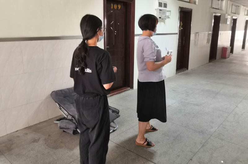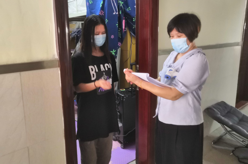 工作人员登记进入宿舍的学生信息