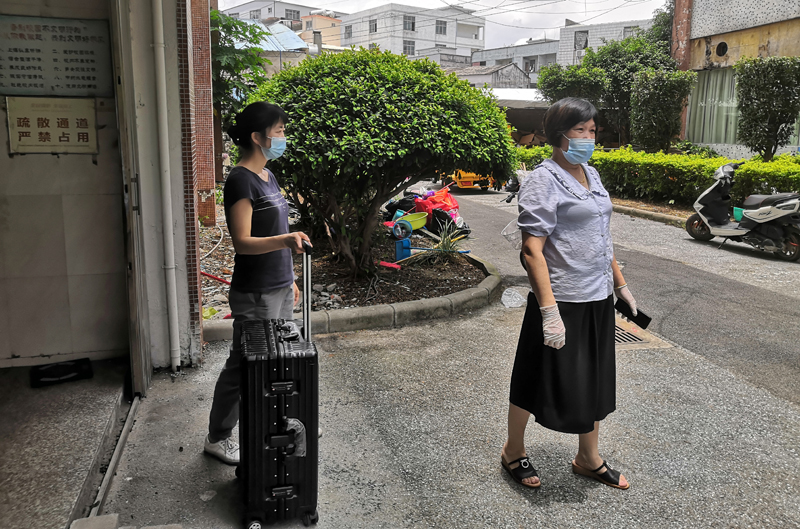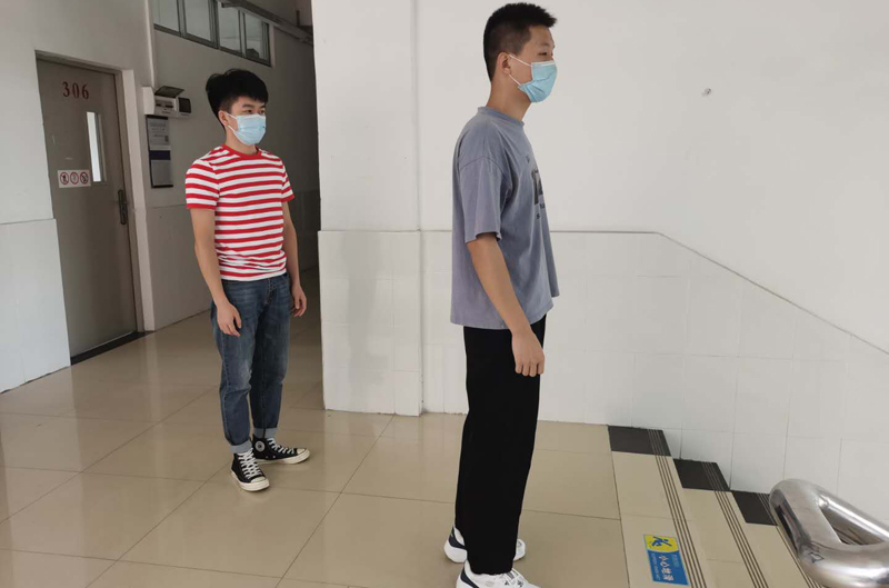 返回宿舍学生排队等候信息核查和体温检测