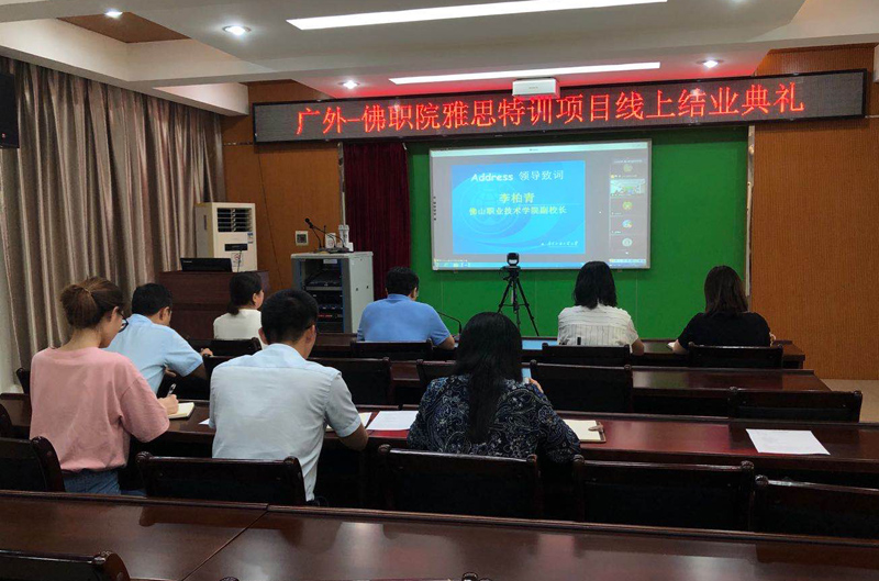 本网讯 6月30日下午,由我院开展的首届佛山职业技术学院中法国际雅思考试特训班结业典礼在线上举行,佛山职业技术学院副校长李柏青、办公室主任刘珺、工商管理学院院长陈平,我院党委书记邵兵、副院长胡海娟、继续教育中心主任白丽云,全体教师及学员参加。
