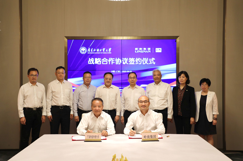 本网讯 2020年8月3日,我校与岭南集团签署战略合作框架协议。广东外语外贸大学党委副书记、校长石佑启,副校长陈林汉,岭南集团党委书记、董事长冯劲,党委副书记、总经理梁凌峰,副总经理李峰,工会主席黄曦,广外电竞学院,食品集团等负责人参与签约仪式,仪式在广州东方宾馆举行。
