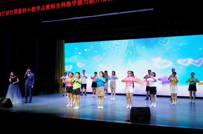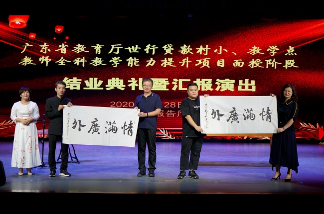 本网讯 8月28日,广东省教育厅世行贷款村小、教学点教师全科教学能力提升项目面授课程结业汇报在北校区六教报告厅举行。高等继续教育学院党委书记邵兵、副院长胡海娟,教师代表洪淑燕,项目执行负责人刘文明和项目组全体工作人员出席,100名学员参加。活动由学员郭佳纯、黄崇瀚主持。