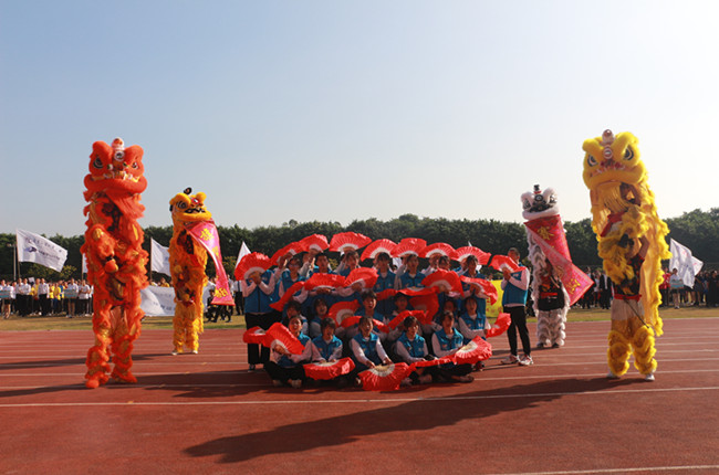 在27日的开幕式中,我院由27名学生和4头舞狮组成的方队迈着整齐的步伐,喊着响亮的口号出场,他们精神抖擞,斗志昂扬,展现出了继教公开学子们意气风发,朝气蓬勃的精神风貌,学子们利用扇子造型,舞狮做出形态动作,表达我院学子团结拼博、勇于创新的精神,最终在22个学院方队中获得第二名的佳绩。