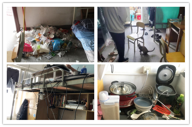 随后,联合检查队伍分为四组,对晨明楼等7栋学生宿舍进行安全检查。在检查中,发现部分宿舍存在使用违规高功率电器、私拉电线、蓄养动物宠物、宿舍卫生脏乱等现象,检查人员当场对问题宿舍的同学进行批评教育,并要求限期整改。
