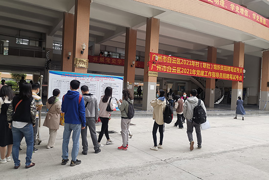 本网讯 4月10日上午,广州市白云区2021年村(联社)组织员、党建工作指导员招聘笔试在我校北校区举行。本次考试由我院与广东省白云人才发展有限公司共同承接,我院协助做好监考人员的培训工作,负责考试场地、考场布置与安保等后勤保障工作。白云区委组织部副部长蒋学刚、白云人才董事长陈哲在考试现场进行了巡考工作,我院副院长李天明、高级管理培训中心副主任白丽云陪同。