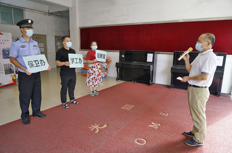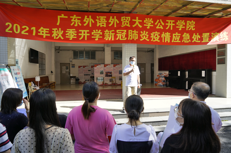 为加强疫情常态化防控工作形势下学院疫情应急处置能力,巩固学校疫情防控防线,确保2021年秋季学期顺利开学及师生健康,9月1日下午,我院在公开学院白云湖校区组织开展2021年秋季开学新冠肺炎疫情应急处置演练,我院党委书记邵兵,副院长陈国兴,党委副书记曾继平及学院各职能部门代表参加。