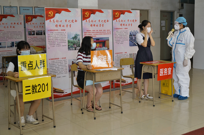 学生进入临时隔离室等待