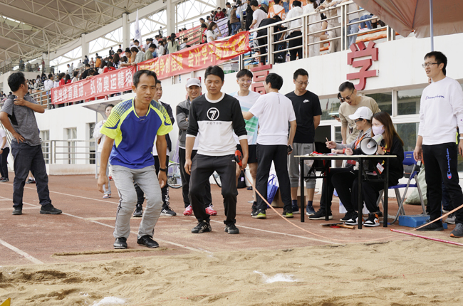 我院教工在男子中青年立定跳远中破纪录