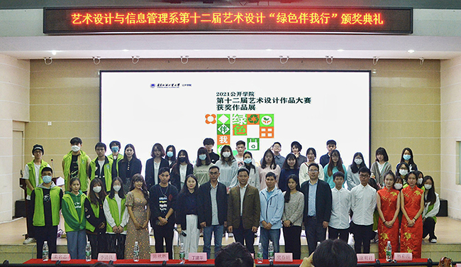 本网讯 12月14日晚,我院第十二届艺术设计作品大赛颁奖典礼在白云湖校区学术报告厅举行。颁奖典礼以“绿色伴我行”为主题,由艺术设计与信息管理系承办。学院副院长任跃忠,团委书记赵正苗,艺信系常务副主任丁建华,各系部教师代表及团学主席团代表等出席。