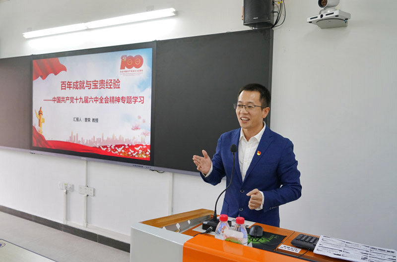 本网讯 为加深对党的十九届六中全会精神的理解,12月16日下午2:30,学院邀请大学百年党史宣讲团成员、马克思主义学院教授曾荣解读党的十九届六中全会精神,学院领导、各部门(系部)正副主任及全院党员到白云山校区第一教学楼南楼324课室聆听,讲座由学院党委书记邵兵主持。