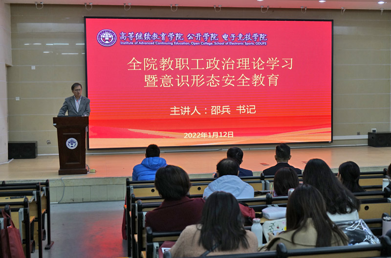本网讯 1月12日下午3:00,学院在白云湖校区学术报告厅召开全院教职工政治理论学习暨意识形态安全教育会议,学院领导班子及全体教职员工参加。会议由学院党委书记邵兵主持。