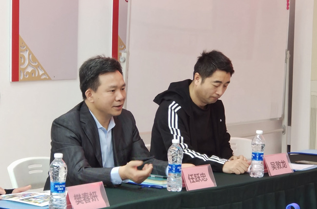 国际体育职业教育中心主任李宇介绍了体职教中心的成立初衷和发展历程。体育人才匮乏是制约体育行业发展的重要因素,奥绅职业教育为打造体育人可持续成长平台,与广外合作设立体职教中心,在教学上要求差异化、可持续发展以及高质量。体职教教务主任赵岩结合日常学生管理工作,从教学管理、教研督导、实践教学、学生活动、防疫措施等方面详细汇报了具体工作落实情况,并展示了体职教学子教学实践的部分成果。