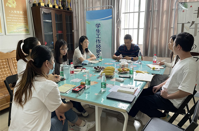 本网讯 6月17日下午,学院在白云湖校区职工小家召开辅导员工作交流会,交流、探讨学生心理健康教育。会议由学院党委副书记曾继平主持,学工办副主任邹晓翔与各教学单位辅导员代表参加了交流。