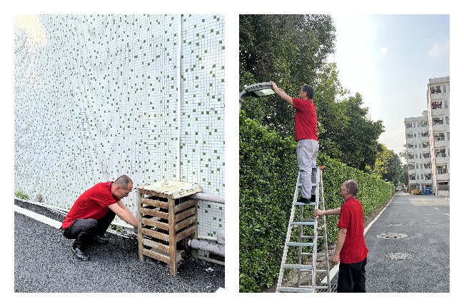 维修工作人员不辞辛苦、早到岗晚离校,对开学前校园的供水、供电、泵房、路灯等相关设备设施进行维修、维护及检查工作。