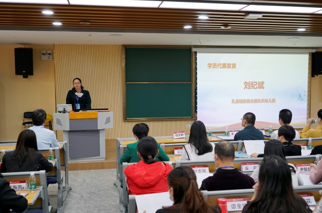 随后,学员代表刘纪斌发言。她感谢培训承办单位的同时,对培训中的跟岗实践安排十分期待,表示将利用好这次难得的跟岗实践机会,与专家、同行积极开展交流,更新教育教学理念,提升自身业务管理能力。