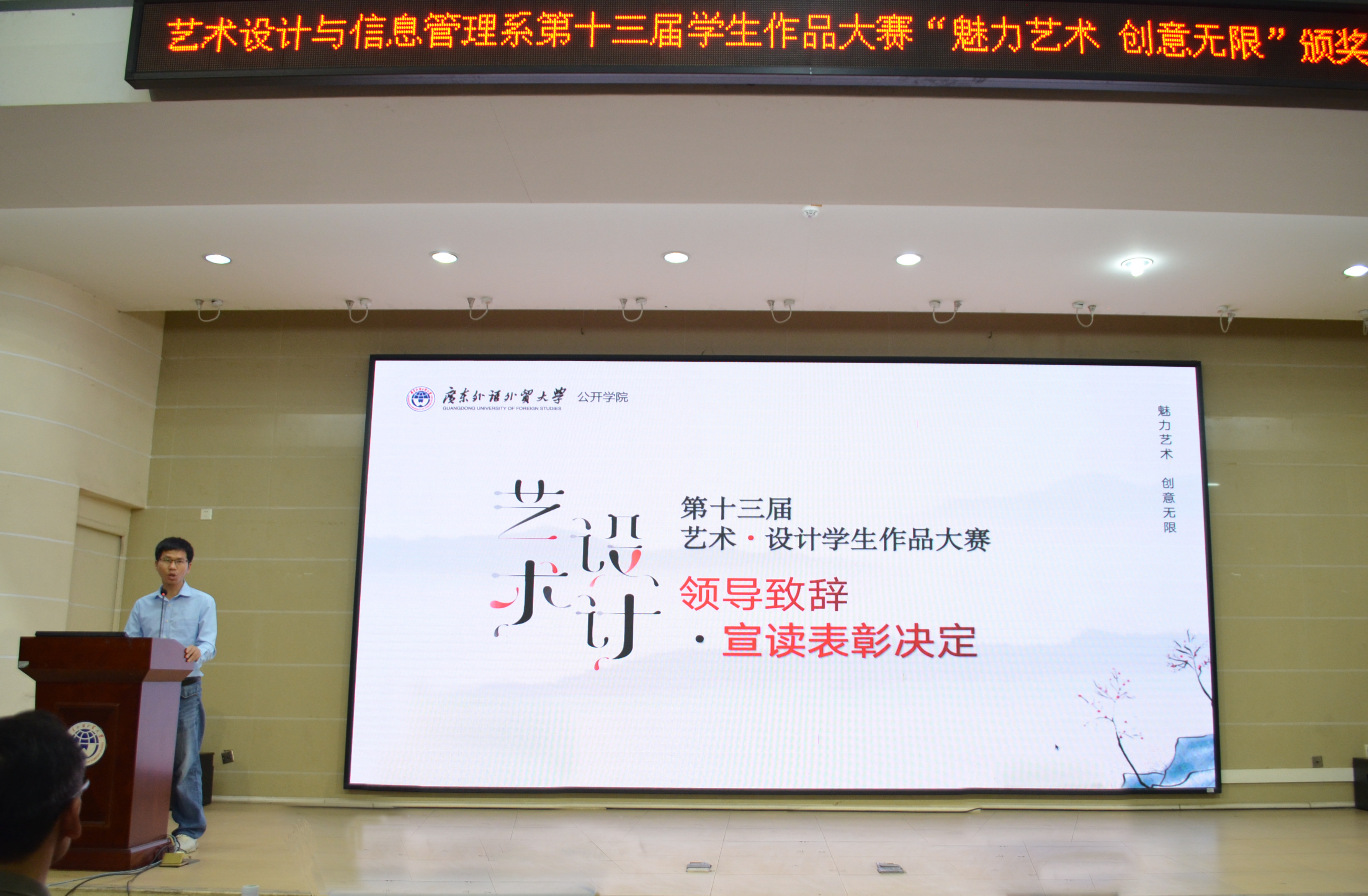 院长助理谢杭锋宣读表彰决定,并肯定了艺术设计作品大赛的组织和艺术设计教学的成果。