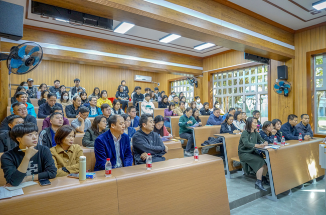 本网讯 12月7日下午,学院在白云山校区第三教学楼101课室开展师德师风素养教育专题讲座,特邀学校原党委书记、原校长徐真华教授主讲,学院中层管理人员、教工党员及师生代表共100余人同时在线上线下聆听。讲座由学院党委书记胡海娟主持。