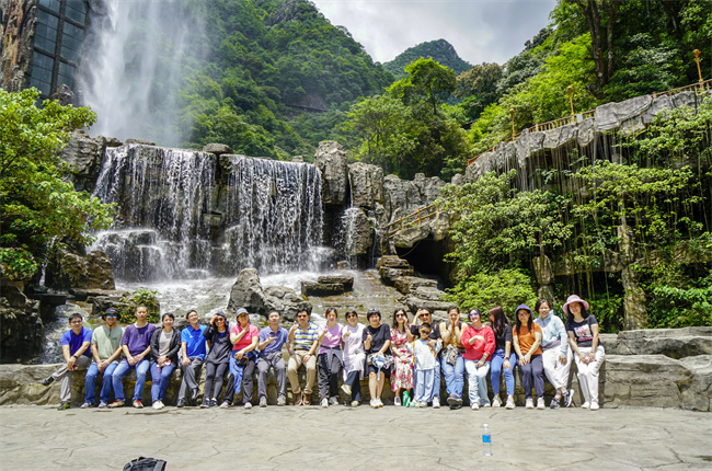 瀑布前合影
