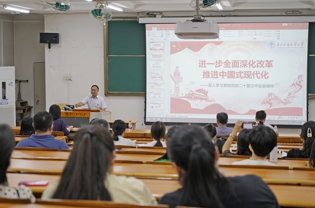 讲座中,周智武以“进一步全面深化改革推进中国式现代化——深入学习贯彻党的二十届三中全会精神”为题,解读了习近平总书记在党的二十届三中全会上的重要讲话和全会精神。指出党的二十届三中全会是一次在关键时期召开的具有里程碑意义的会议,强调习近平总书记的重要讲话深刻回答了进一步全面深化改革、推进中国式现代化的一系列方向性、根本性重大问题。会上审议通过的《中共中央关于进一步全面深化改革、推进中国式现代化的决定》,科学谋划了围绕中国式现代化进一步全面深化改革的总体安排,明确了进一步全面深化改革的指导思想、总目标、重大原则,是指导新征程进一步全面深化改革的纲领性文件。他鼓励大家通过深入学习,切实增强改革意识、发展意识、创新意识,为推动学院教育事业高质量发展贡献力量。