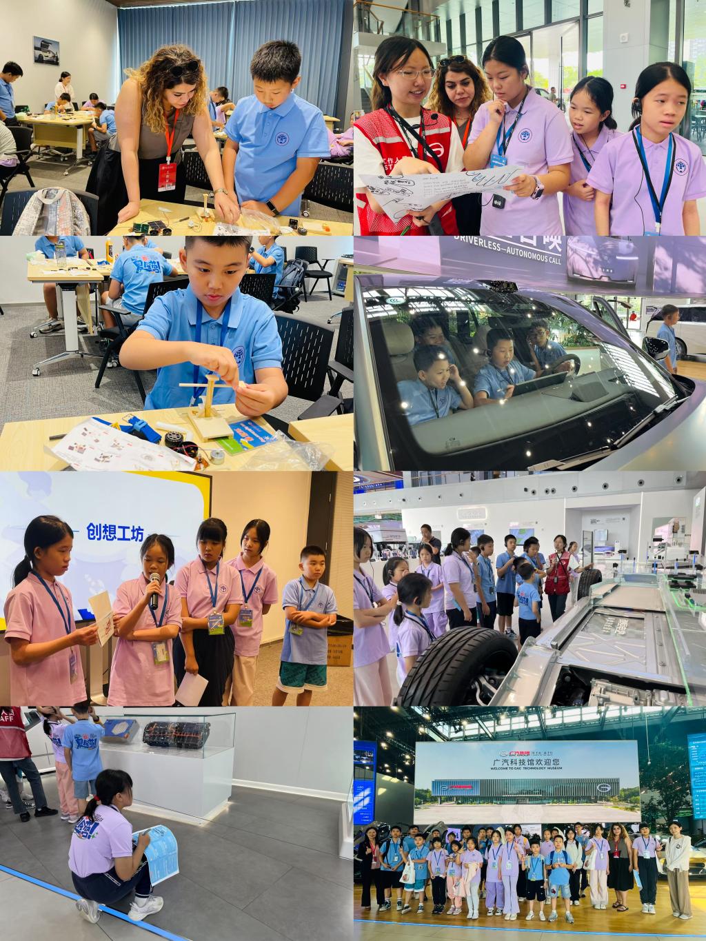 值得一提的是,本次夏令营在保障团队与教学师资上颇具匠心:每班配备3名班主任全程陪伴,更邀请了广外外教SARVI与中教张小芳联合授课,为学员提供专业且细致的指导。从参观校史馆到“智行绿动 领航未来”广汽科技馆研学实践,学员们在丰富的课程与活动中,既提升了英语能力,也收获了珍贵友谊与成长感悟。