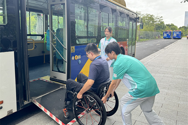 抵离接待工作启动当日,志愿者累计接待运动员300余人次,提供下车引导、行李搬运、房间指引等服务,实现“零差错、零疏漏”,为赛事顺利开展奠定良好基础。赛事期间,志愿者以高标准服务累计完成2700余名运动员上下车指引、保障210余车次出行需求,重点帮扶轮椅运动员、听障及智力人士乘车,并及时解答各类疑问,以专业服务为赛事助力。