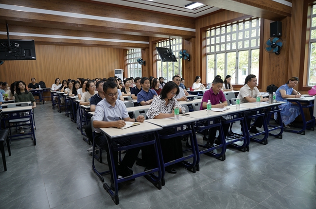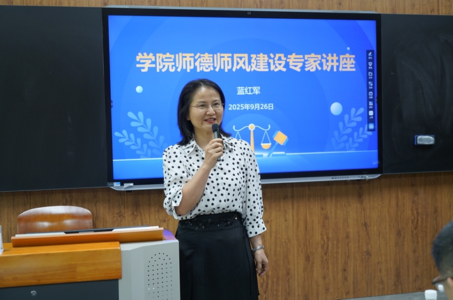 本网讯 为深入推进师德师风建设,以榜样力量引领教育教学高质量发展,9月26日下午,学院举办师德师风建设专题讲座,学院党委特邀入选教育部第四批“全国高校黄大年式教师团队”创建示范活动广外翻译教师团队负责人、高级翻译学院院长蓝红军教授作主题分享。我院副院长(主持工作)余海波、党委书记胡海娟、正处级纪检监察员刘哲、副院长任跃忠及全体教师参会,讲座由胡海娟主持。
