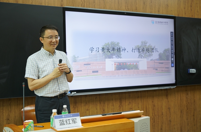 蓝红军以“学习黄大年精神、打造卓越团队”为主题,深入解读了习近平总书记对黄大年同志先进事迹的重要指示,并介绍了高翻学院2025年全国高校黄大年式教师团队创建进展。他强调,习近平总书记高度肯定黄大年同志“心有大我、至诚报国的爱国情怀”“教书育人、敢为人先的敬业精神”“淡泊名利、甘于奉献的高尚情操”,这既是对教育工作者的精神指引,也是新时代教师团队建设的根本遵循。