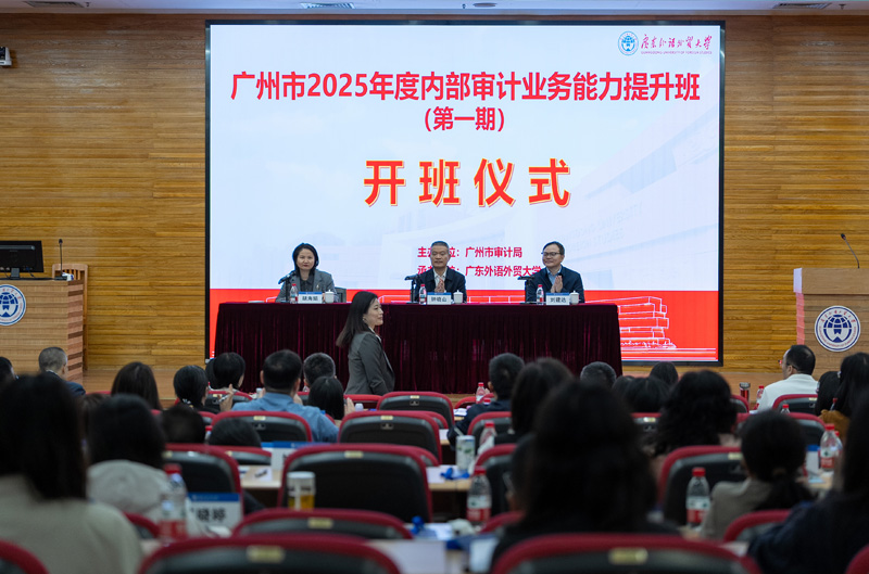 本网讯 12月10日上午,由广州市审计局主办、广东外语外贸大学承办的广州市2025年度内部审计业务能力提升班(第一期)开班仪式在我校白云山校区图书馆报告厅举行。广州市审计局党组成员、副局长、二级巡视员钟晓山,我校副校长刘建达,广州市审计局内审处处长潘晓毅以及来自全市30家国有企业的58名内审骨干及市审计局相关同志参加本次培训。仪式由高等继续教育学院党委书记胡海娟主持。