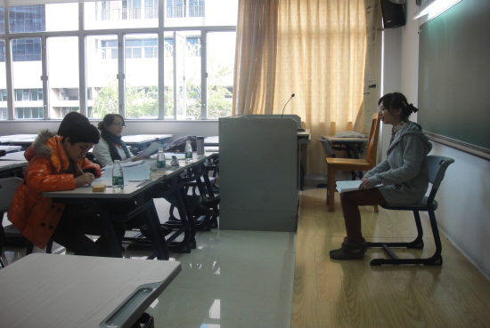 本网讯 12月2日下午,自考本科毕业生申请学士学位论文答辩工作在北校区第七教学楼进行。经过各专业指导教师的精心指导、审核教师的严格审核,来自英语、商务英语、日语、国际贸易、商务秘书等16个专业的141名自考毕业生参加了答辩。