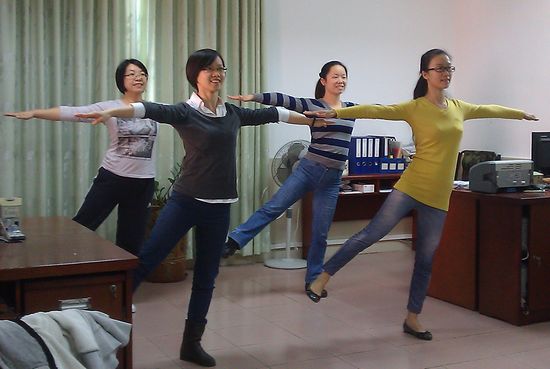 现在大家已经形成习惯,每天广播操预备音乐响起,都主动放下手中的事情,随着欢快的韵律和节奏,抬手、弯腰、踢腿……,每个动作都做得格外认真。一套操五分钟做下来,让人神清气爽,精神百倍。此次做广播体操活动深受广大职工的喜好,大家纷纷表示以后要坚持每天做广播体操,增强自身体质,以更精神饱满、积极向上的状态投入到自己的工作岗位。