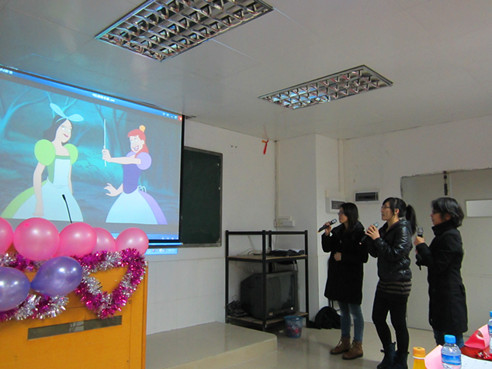 本网讯 12月28日晚7点,继续教育学院外语培训中心英语听说项目部第六届“魅力之声”英语电影配音大赛在三教220室拉开了帷幕。本次大赛邀请到听说项目的三位外籍教师Annie Rubienska, Kathy Virzi, Scott Backus以及学历教学部主任林碧玲担任评委。听说项目部负责人董秀清老师,C02班指导老师陈洁及C03班指导老师贺捷都到场观看。当晚的比赛由来自C01-C03三个班共7支队伍同场竞逐。比赛也吸引了学院不少其他级别的同学前来观看。