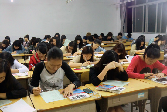 学生们认真晚修