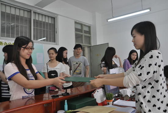 本网讯 4月23日至5月9日,公开学院教务办给予于2012年12月成功申请毕业的912名学生发放了由广东省自学考试委员会颁发、广东外语外贸大学副署的本、专科毕业证书。据统计,发放的专科毕业证书621份,本科毕业证书291份,并有多名本科毕业生符合广东外语外贸大学学位申请条件,同时进行了学士学位申请。